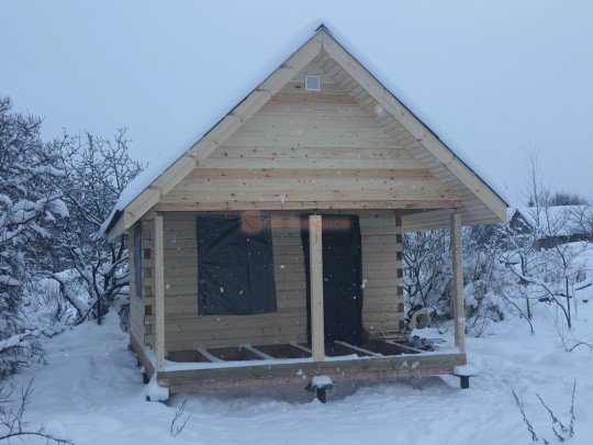 Такая одноэтажная баня 4х6 может быть построена из бруса. Ориентировочный срок строительства 14 дней.