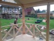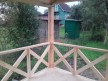 На террасе при условии что она есть делаем перила из строганной доски со всех сторон, столбы террасные также строганные, а не обрезки профилированного бруса с шипом и пазом. Домкратики на столбах для дальнейшей регулировки. Балясины будут сделаны аккуратно. Обратите внимание что в дешёвых случаях это может быть и будет просто вагонка прибирая к неотесанной доске снаружи и столбы будут не квадратные а просто профилированный брус как на видео.