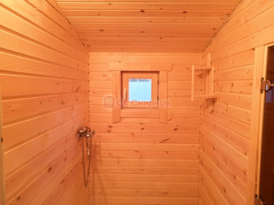 В помывочной устанавливается бойлер, бак, насос, смеситель, одним словом полный комплект чтобы принимать душ даже без центрального водоснабжения.