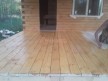 На террасе при условии что она есть делаем перила из строганной доски со всех сторон, столбы террасные также строганные, а не обрезки профилированного бруса с шипом и пазом. Домкратики на столбах для дальнейшей регулировки. Балясины будут сделаны аккуратно. Обратите внимание что в дешёвых случаях это может быть и будет просто вагонка прибирая к неотесанной доске снаружи и столбы будут не квадратные а просто профилированный брус как на видео.