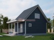Изначально мы проектировали этот дом в качестве дачи: простая двускатная крыша, большая угловая терраса и небольшой размер 7,5 на 8 метров — это атрибуты недорогих загородных домиков эконом класса. Но когда стали рисовать варианты планировки, поняли, что на 88 квадратах вполне себе можно разместить уютную квартиру с отдельной кухней, гостиной, санузлом и тремя спальнями.