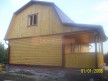 На фото представлен проект недорогого дома №41 габаритами 8х9 метров и отличной планировкой общей площадью 108 квадратных метров. Можно выделить несколько особенностей проекта: терраса, веранда, санузел. Сруб с мансардой, может использоваться как зимний, для постоянного проживания, коттедж.